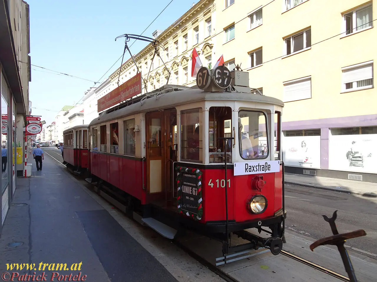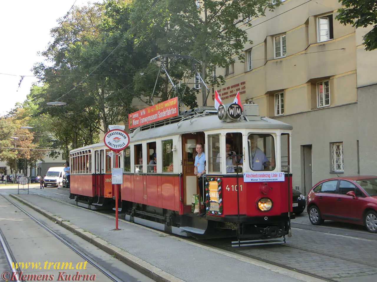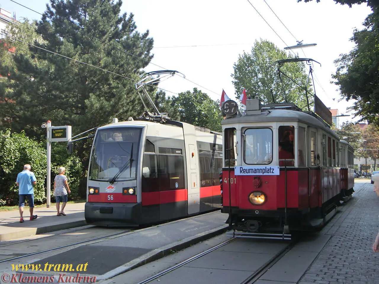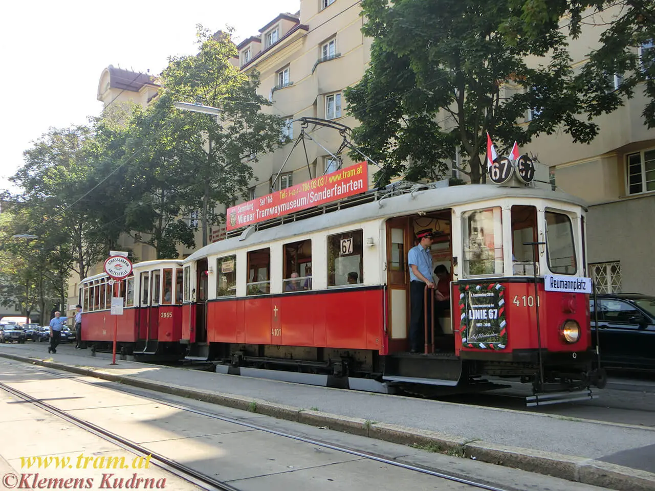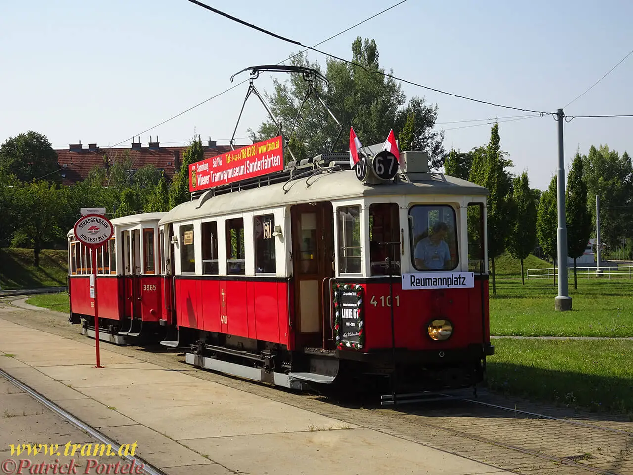 Die Fahrten wurden zwischen Reumannplatz und Otto-Probst-Platz (bzw. Reumannplatz – Raxstraße, Rudolfshügelgasse) mit unserer authentischen historischen Straßenbahngarnitur, bestehend aus Triebwagen Type M Nr. 4101 und Beiwagen Type k5 Nr. 3965 durchgeführt.