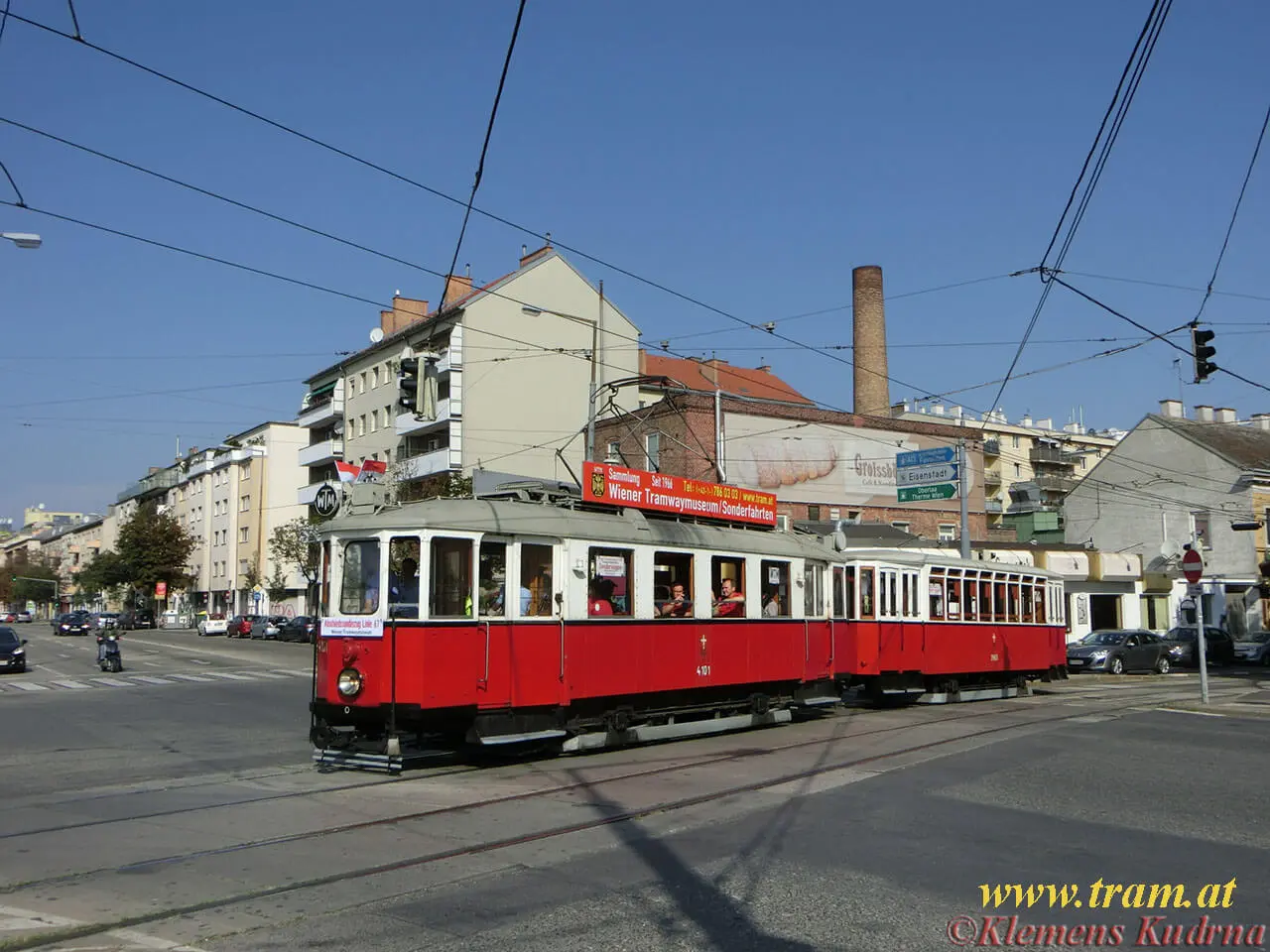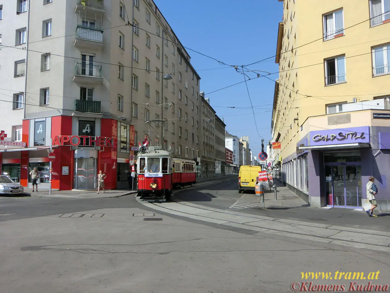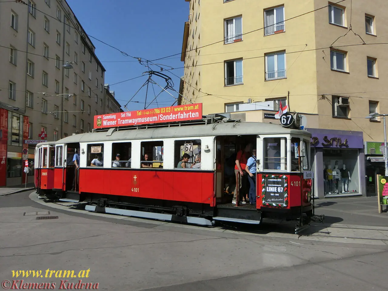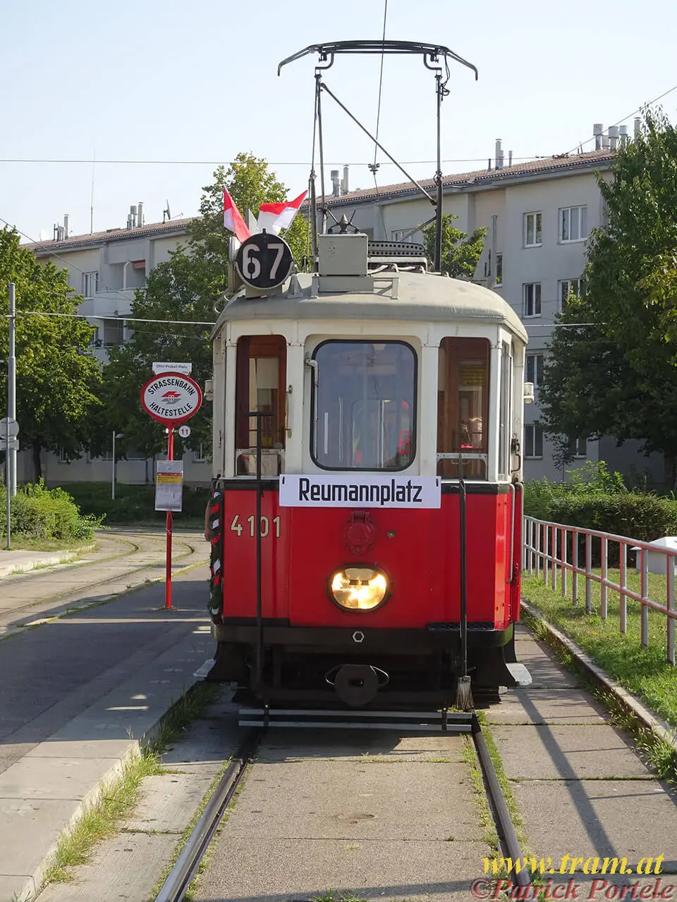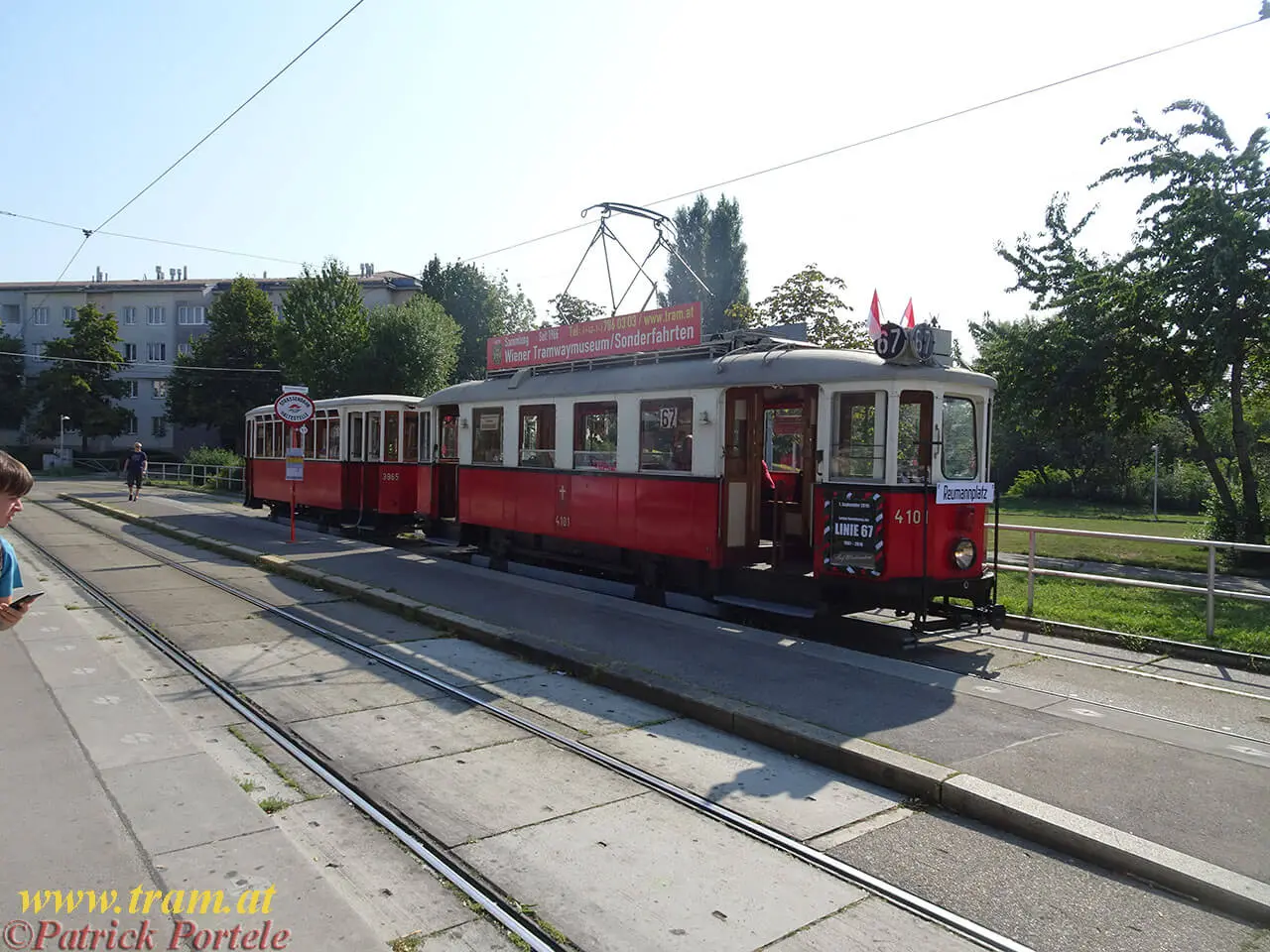 Die Fahrten wurden zwischen Reumannplatz und Otto-Probst-Platz (bzw. Reumannplatz – Raxstraße, Rudolfshügelgasse) mit unserer authentischen historischen Straßenbahngarnitur, bestehend aus Triebwagen Type M Nr. 4101 und Beiwagen Type k5 Nr. 3965 durchgeführt.