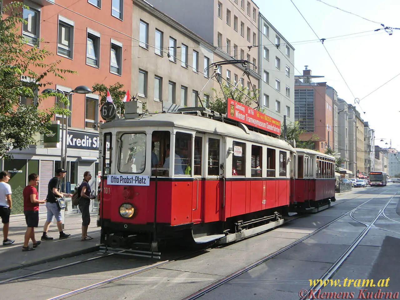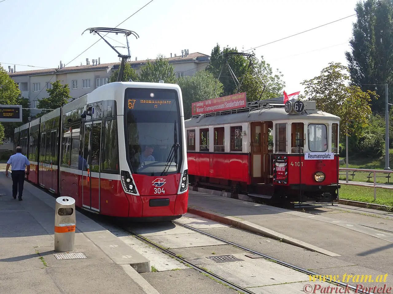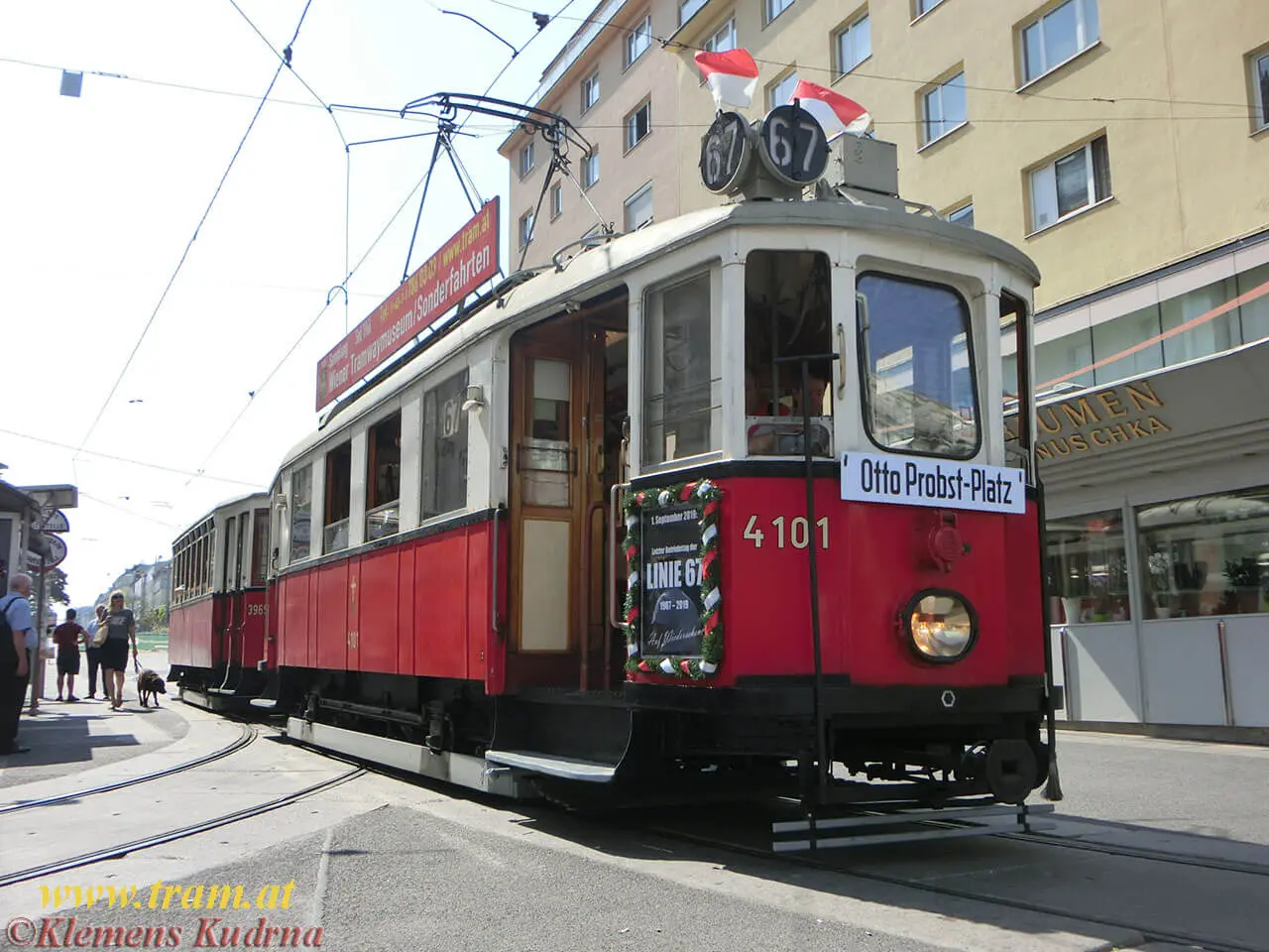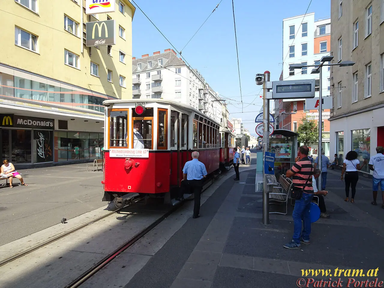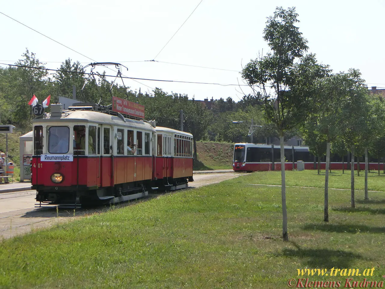 Die Fahrten wurden zwischen Reumannplatz und Otto-Probst-Platz (bzw. Reumannplatz – Raxstraße, Rudolfshügelgasse) mit unserer authentischen historischen Straßenbahngarnitur, bestehend aus Triebwagen Type M Nr. 4101 und Beiwagen Type k5 Nr. 3965 durchgeführt.
